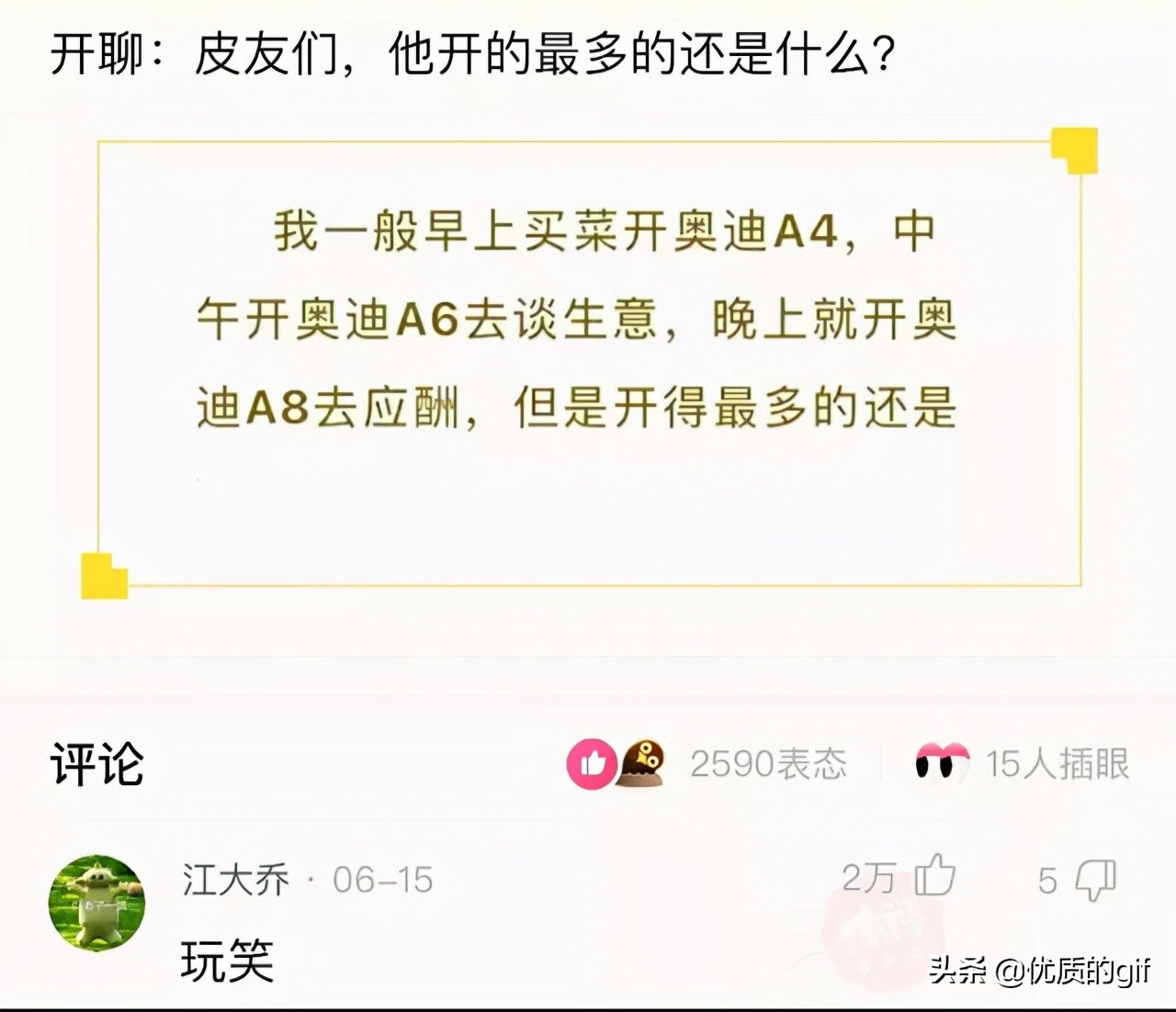 錢正好買了輛奧迪A9。