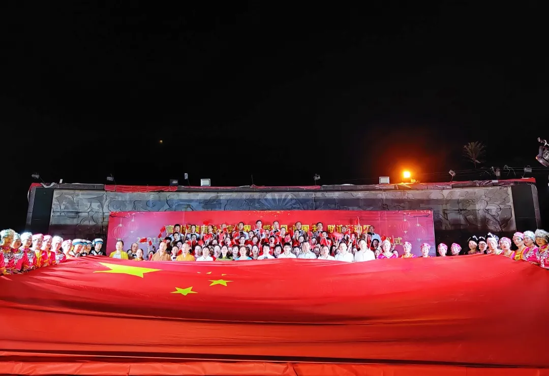 最後,全體人員圍繞在五星紅旗旁共同唱響《沒有共產黨就沒有新大陸》這首永恒的主旋律中落下了帷幕。