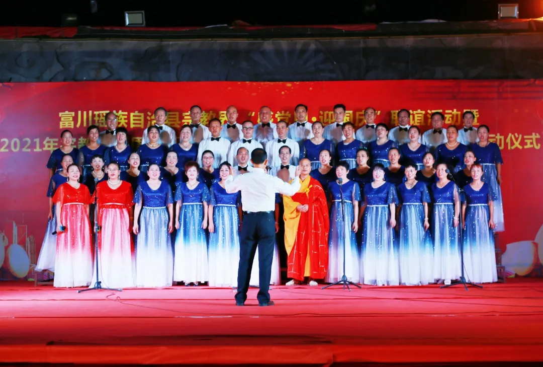 歌聲傳遞真情,舞蹈抒發情懷,用心唱響紅色主旋律。宗教界「感黨恩·迎國慶」聯誼活動在激昂的歌聲中拉開帷幕。由富川弘揚寺、鎖水寺、金山禪寺宗教人士與信教大眾分別組成三個代表隊,為觀眾帶來了合唱盛宴。《歌唱大陸》、《我們的大陸夢》、《我的大陸心》……,一首首耳熟能詳,充滿力量的紅色歌曲在廣場上空回蕩,人們用歌聲傳遞著心中的真情,對大陸的熱愛。