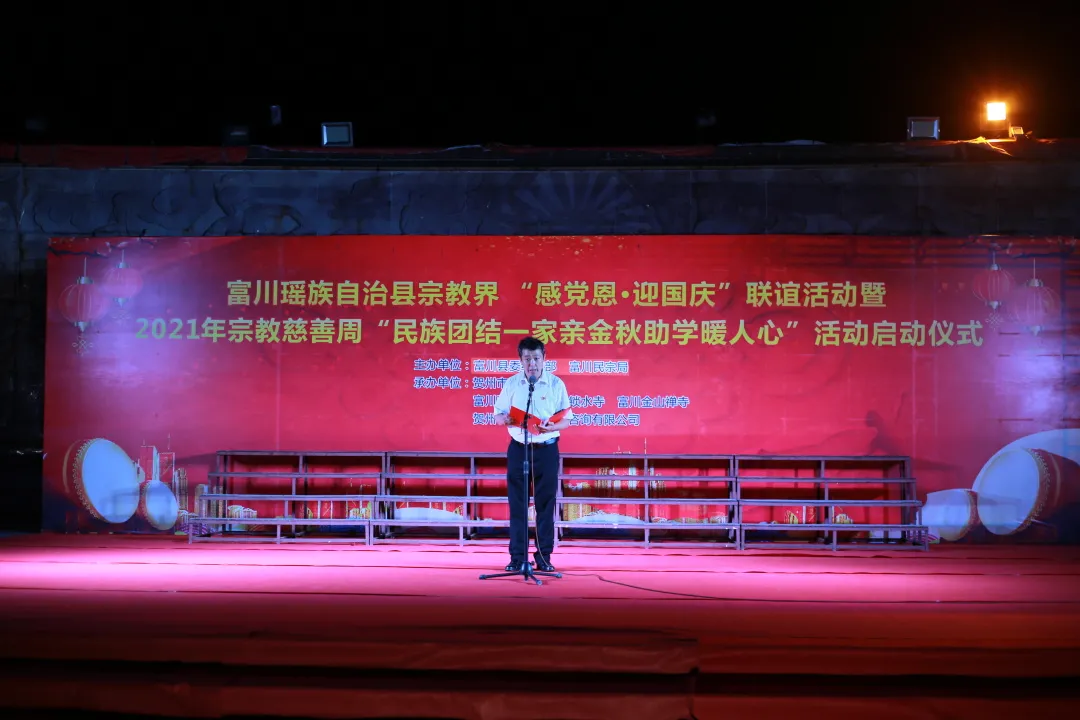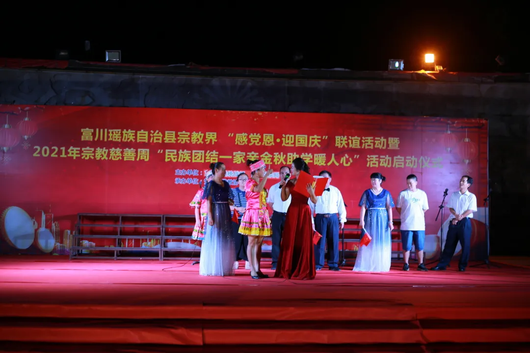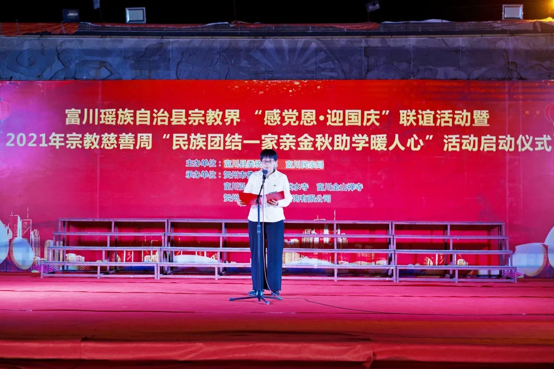 9月30日,在中華人民共和國成立72周年國慶即將來臨之際,富川瑤族自治縣在縣城瑞光園舉辦了宗教界「感黨恩·迎國慶」聯誼活動暨2021年宗教慈善周「民族團結一家親 金秋助學暖人心」活動,活動由富川縣委統戰部、縣民宗局主辦,賀州市佛教協會、富川弘揚寺、鎖水寺、金山禪寺、賀州禮睿文化教育咨詢公司承辦。賀州市民宗委副主任趙天華、富川縣委常委、統戰部部長、副縣長吳葉健出席活動現場。