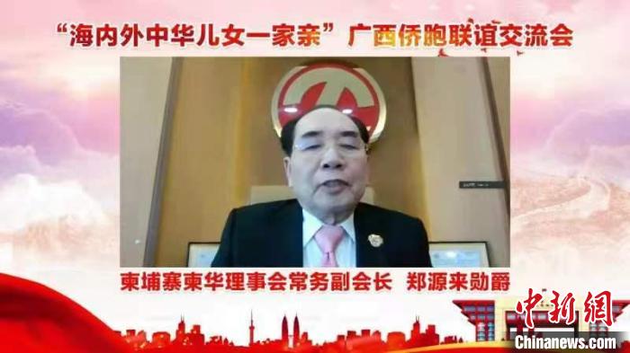 圖為僑領代表通過視訊致辭 廣西統戰部供圖