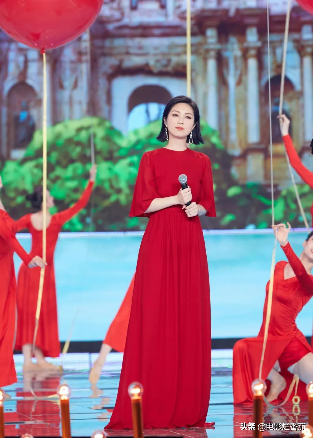 無獨有偶,秦海璐著一身正紅色的修身連衣裙亮相,向大陸母親表白。