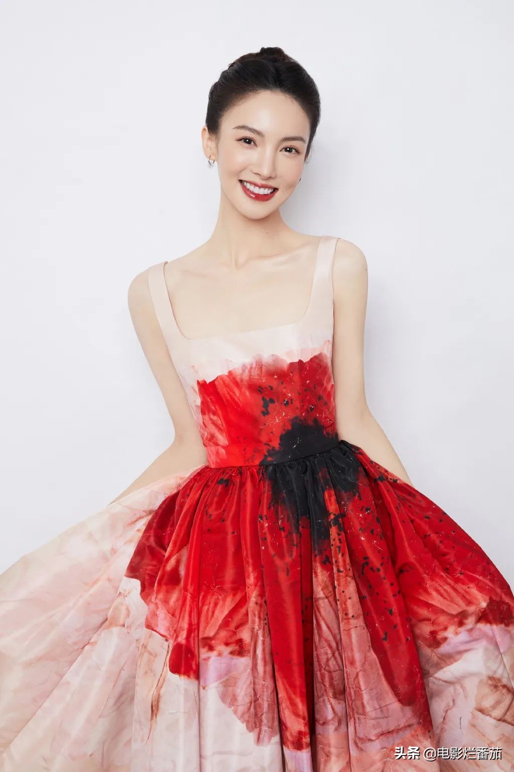 金晨一襲暈染潑墨紅色長裙上身,復古收腰,如同從畫裡走出來,彰顯書香氣質,端莊大氣。