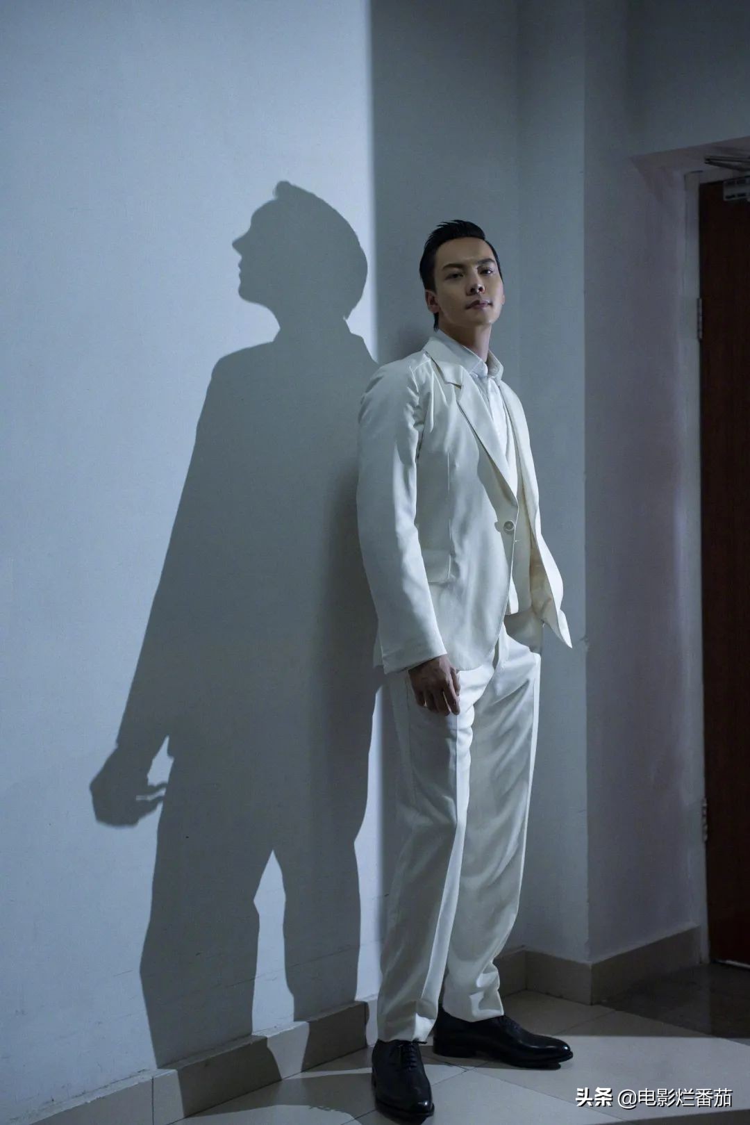 陳偉霆著純白色西裝,v型領口顯臉小,筆挺合身。