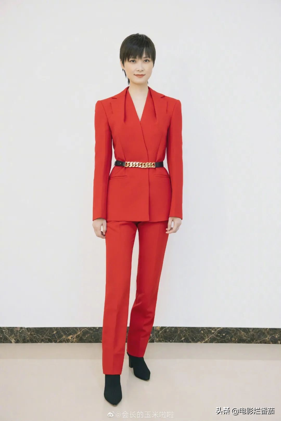 尤其是肩膀上的設計,給人一種「蓬勃興旺」之感,一條腰帶恰到好處,展示劉濤玲瓏有致的好身材。