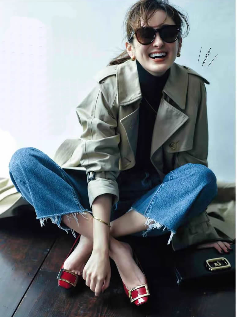 秋天的基本款風衣,如何瞬間時髦?不需要絞盡腦汁,更無須反覆推敲配色。直接來一條經典藍色牛仔褲+小紅鞋吧。