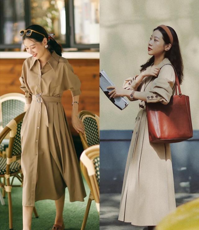 大地色作為其中蘊含著滿滿高級感的色系,可以在秋日經常亮相,以風衣或者是各式連衣裙為主,都能夠在造型中加入顯而易見的高級美。