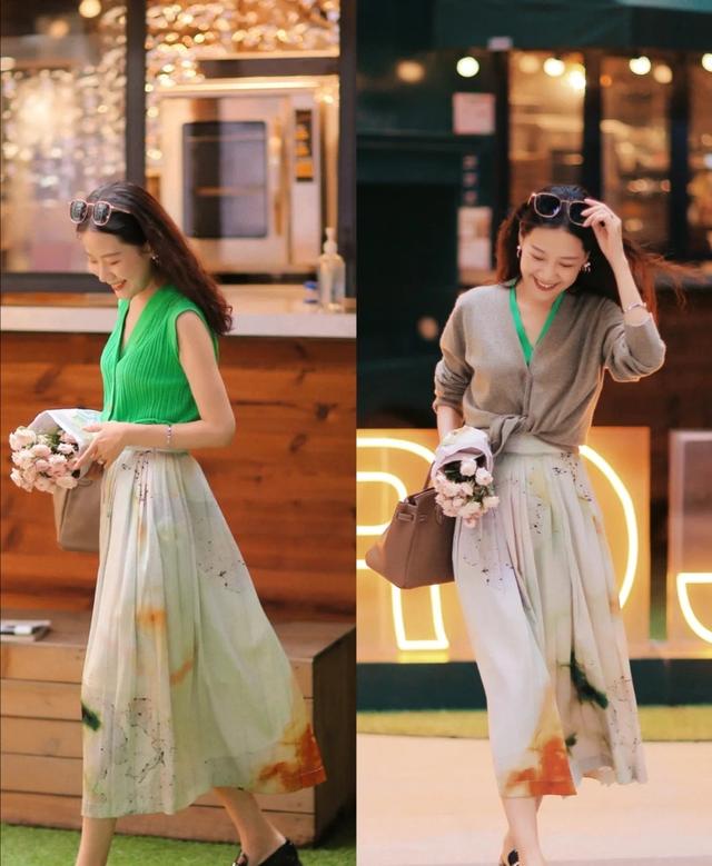 選擇的裙裝中帶有一點點印花的設計,不會顯得混亂,剛好能夠彌補純色單品有點枯燥的不足。