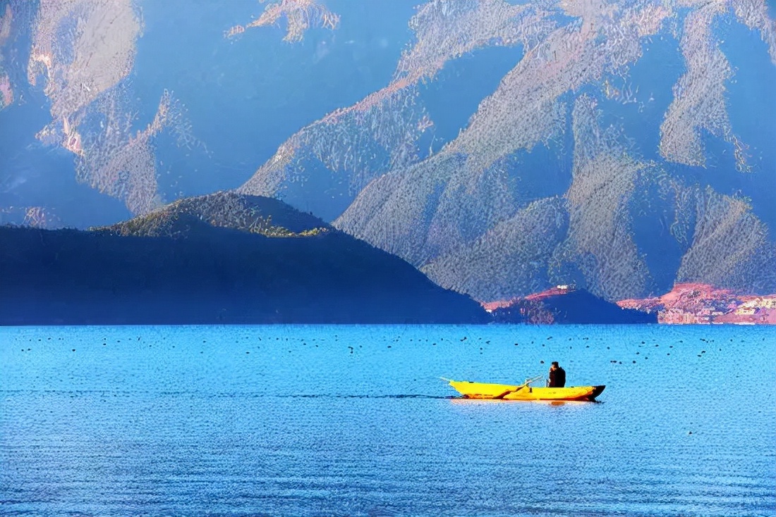 飄蕩在湖中,看著水波泛動與湖邊風景