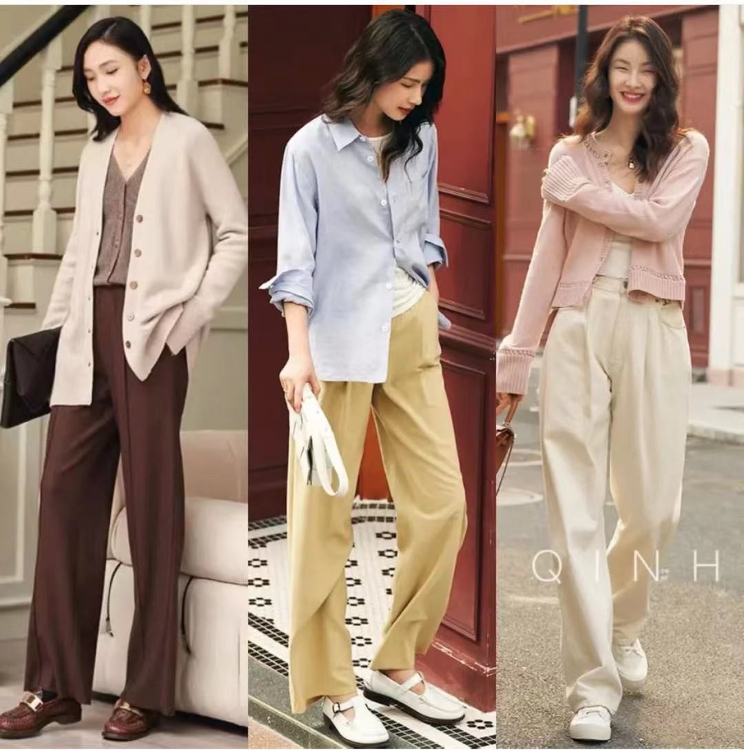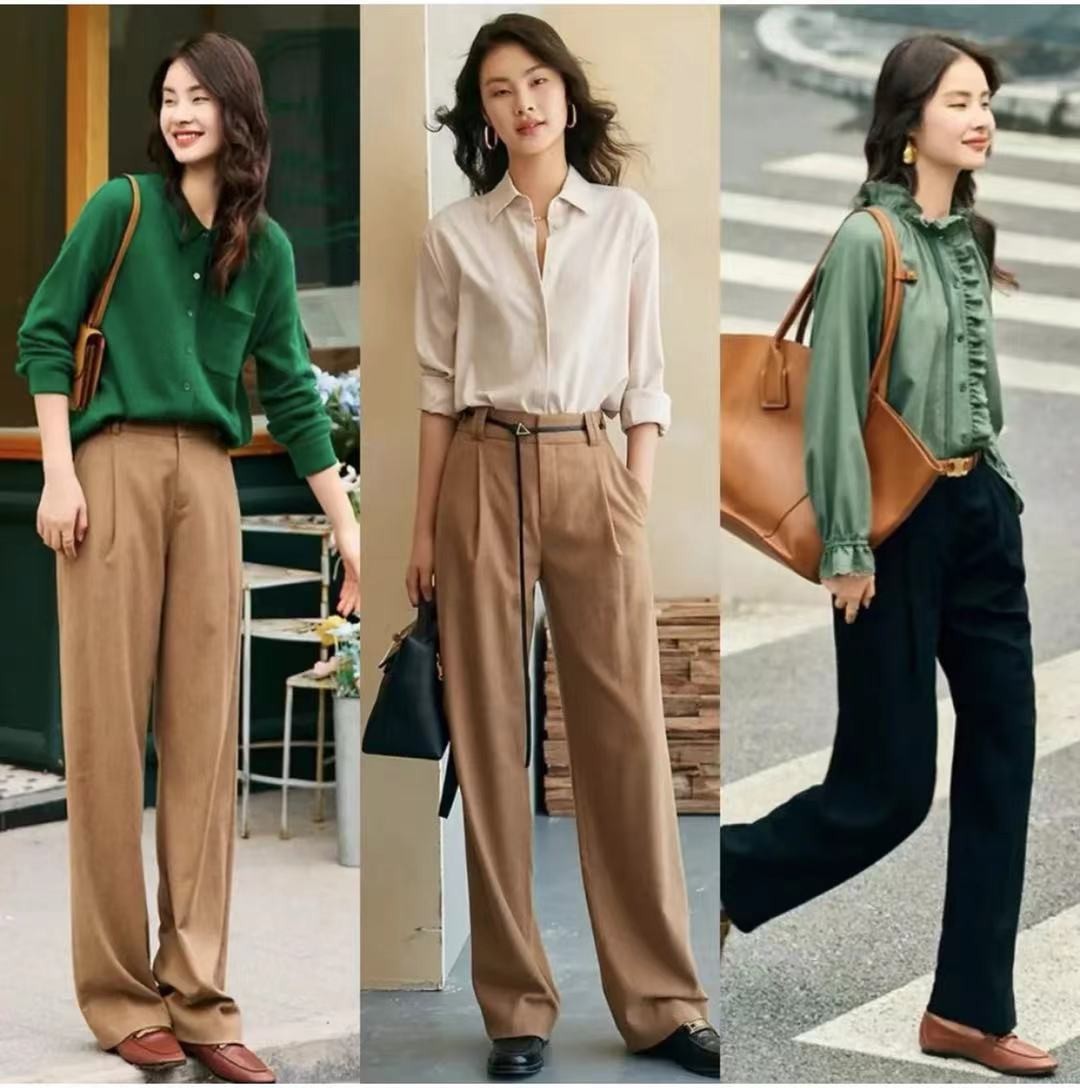 除了各有特點的裙裝,秋季自然也少不了褲子的搭配,寬鬆舒適的休閒褲搭配襯衫,襯托出女生知性優雅的同時也顯得女生格外小巧玲瓏。而且襯衫看起來也是很有質感的,面料非常輕柔,摸起來也是滑滑的。