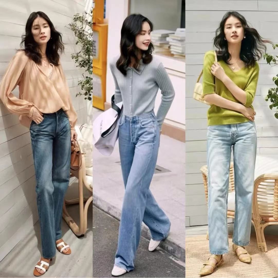 秋季適合穿搭的牛仔褲色系是比較深一點的,深色系的牛仔褲更容易搭配出復古的感覺,而且女生個人也顯得很是清澈、透亮,是比較純真的模樣。