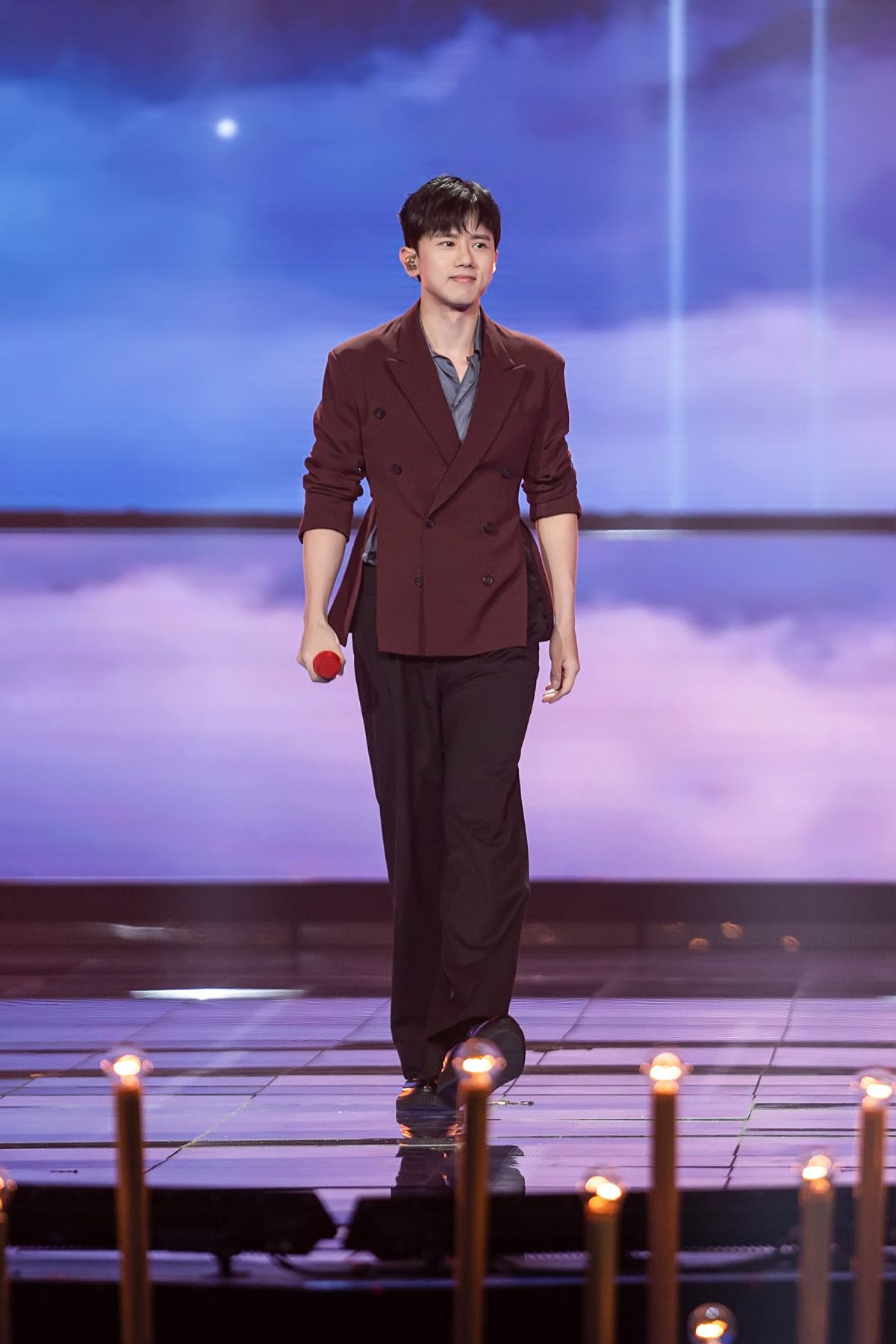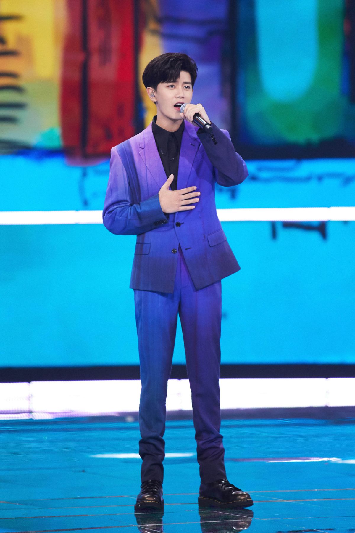 任嘉倫的西裝造型就豐富得多,從版型上來看,他選擇了更加時尚且修飾身材的X版型設計,通過收腰曲線來提升腰線,打造出大長腿效果。