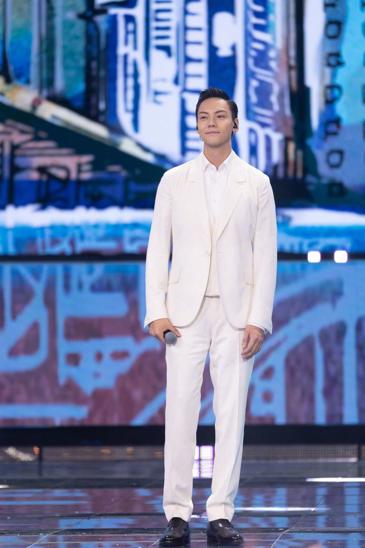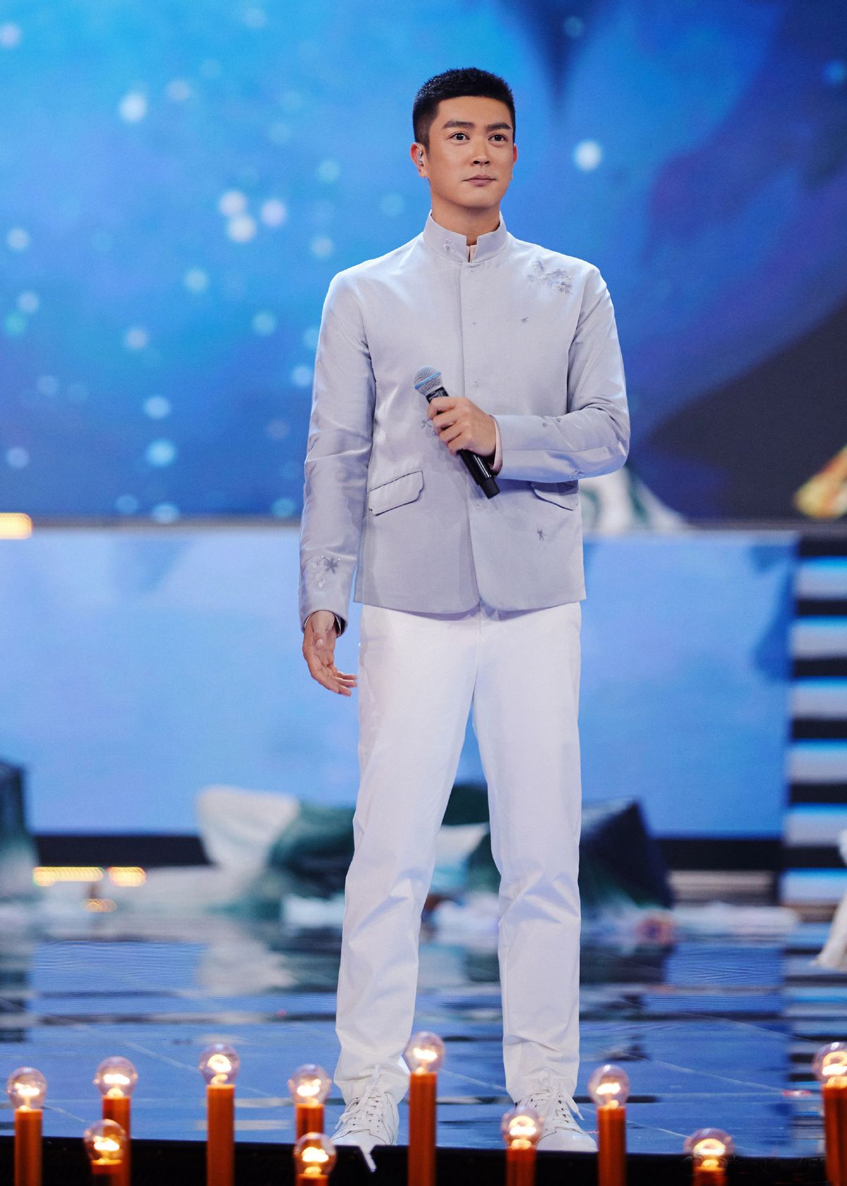 通常來講,白色西裝往往會讓人看起來更清新儒雅,時尚效果也會更勝一籌。陳偉霆就選擇了一身白色西服,看起來簡潔而又不失大方。