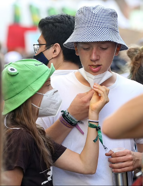 而格蕾塔本人則身著黑色T恤,戴著綠色青蛙帽子,在周五的遊行中與朋友們親密無間歡度抗議美好時光。