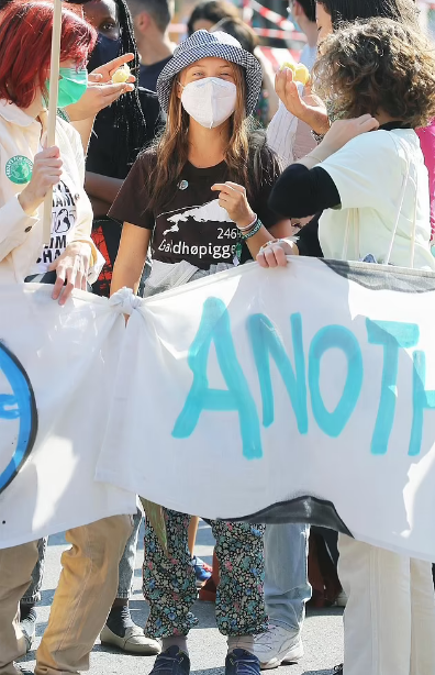 上周五,在米蘭舉行的為期3天的青年氣候峰會(Youth4Climate)活動後,18 歲的格雷塔在遊行中途休息時,親手將薯條喂給一名神秘男子。