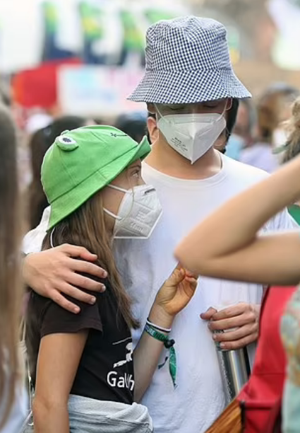 不僅如此,這個大男孩還親熱地摟著「環保少女」的肩膀,而格雷塔則肆無顧忌地依偎在對方身上。