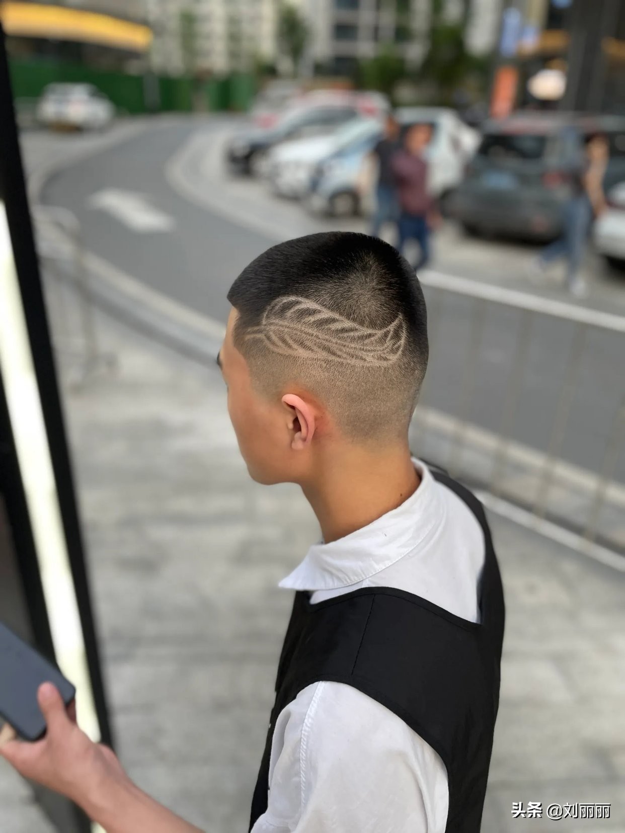 小平頭想要做出與眾不同的效果,可以在頭髮上面加入一些雕刻的圖案,例如這款小平頭就加入了一個樹葉狀的雕刻,很帥很有回頭率。