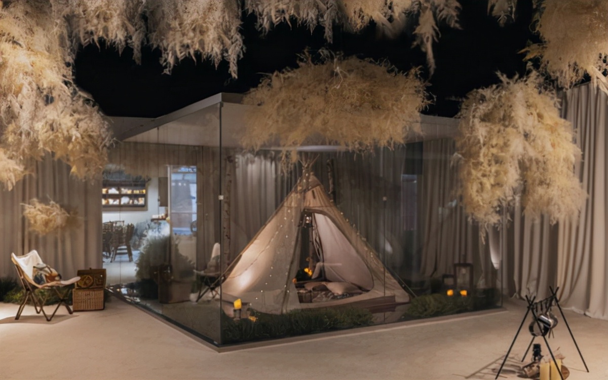 體驗完「海中冥想」,便步入為最新的限量潮流系列——顏色純粹,如夢澄明的露營空間,一切有關於露營的想像皆在這裡完美呈現。在這裡,熱愛時尚與熱愛露營從不沖突。觀者可以在玻璃內外的兩個空間內遊走,是走進帳篷,還是穿梭於野外營地風吹過的草叢之間,都是最隨心的自然體驗。