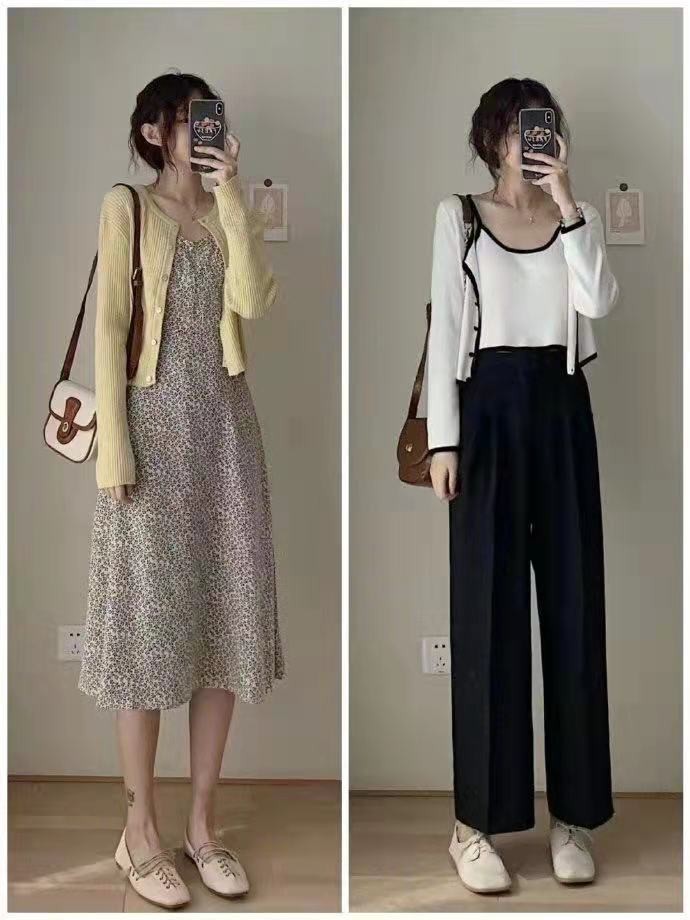 秋天的針織打底也特別的受歡迎,但是如果單穿一件針織打底會顯得過於突兀,不如嘗試一下針織打底搭配吊帶兒,有一種視覺上的層次感。