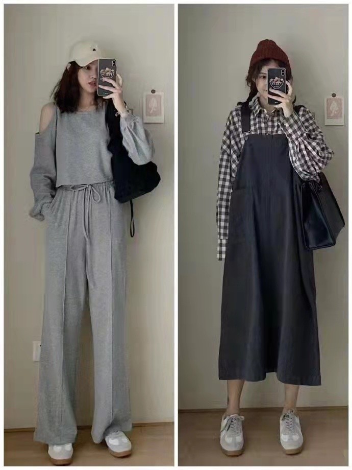 灰色是秋冬季節的主色調,可能很多人認為這種顏色較為單調,但是灰色主旋律上所帶來的高級感是其他顏色無可比擬的。尤其是現在所流行的灰色運動套裝,露肩的設計別致又有個性,而寬鬆自由的版型又呈現出了一種個性與時尚感。