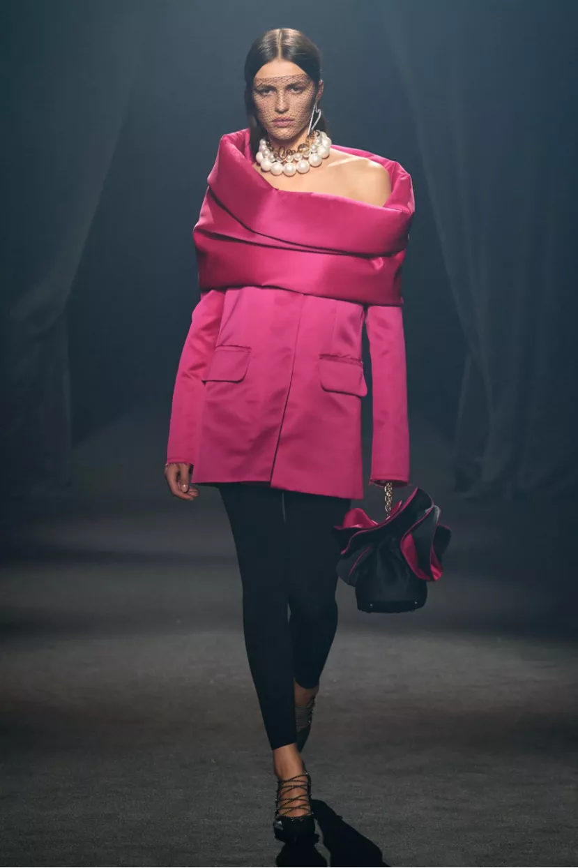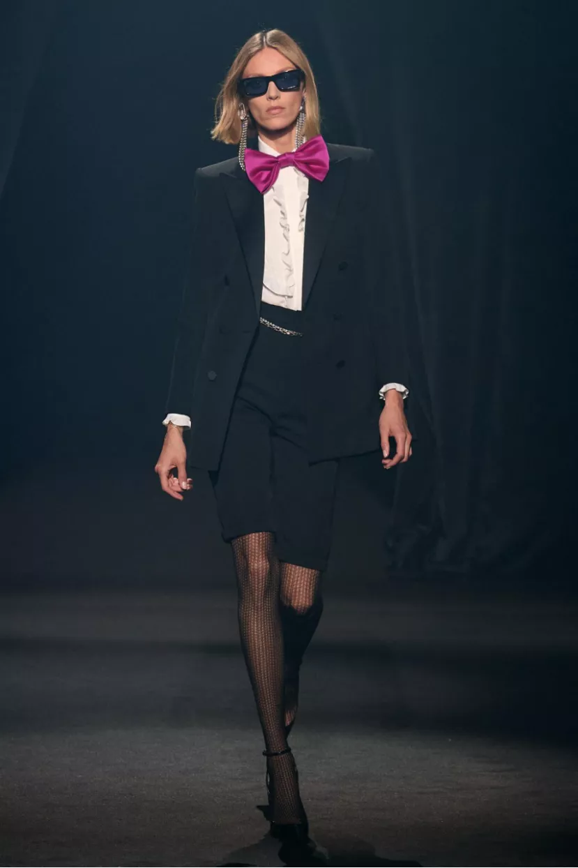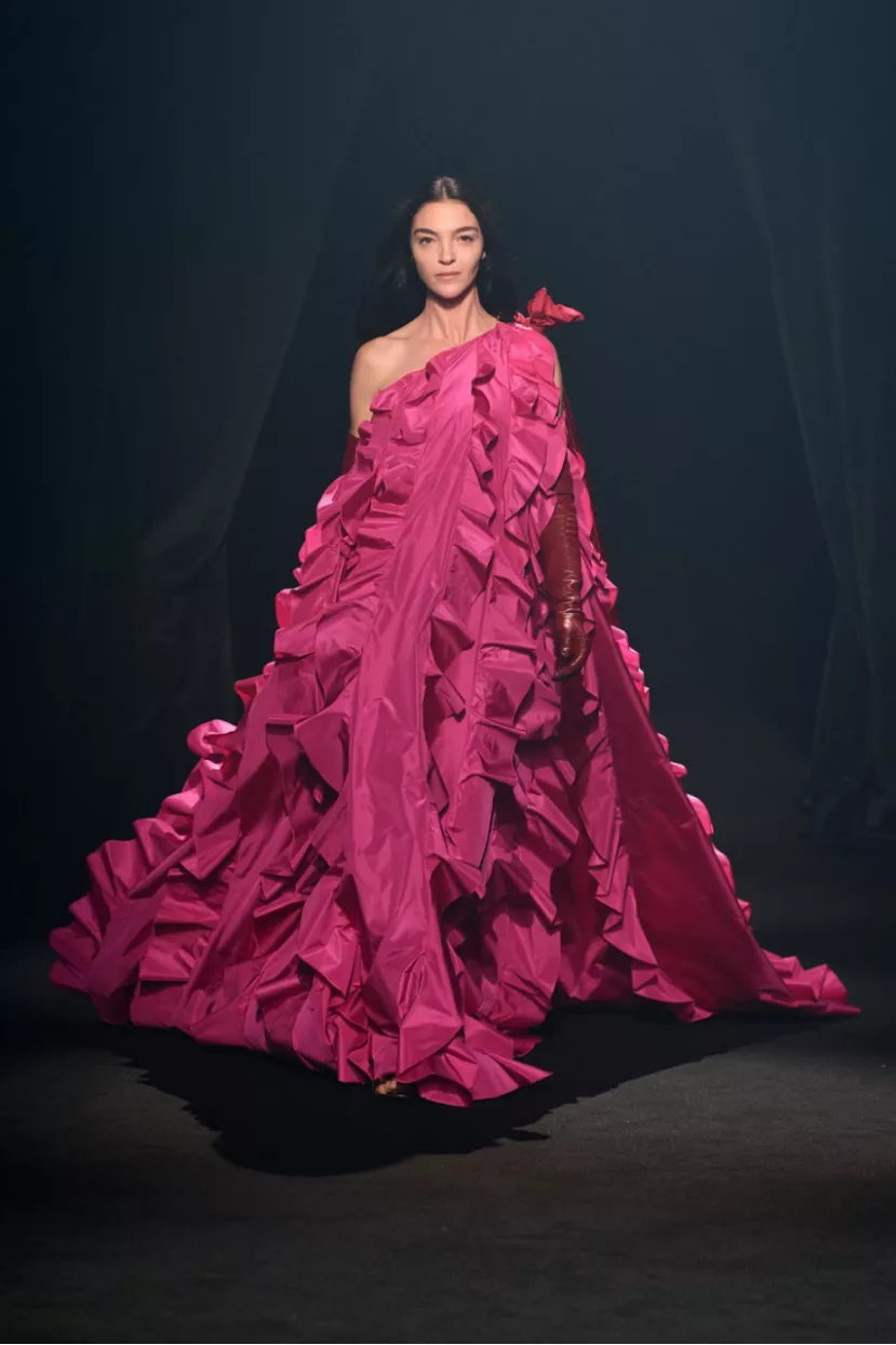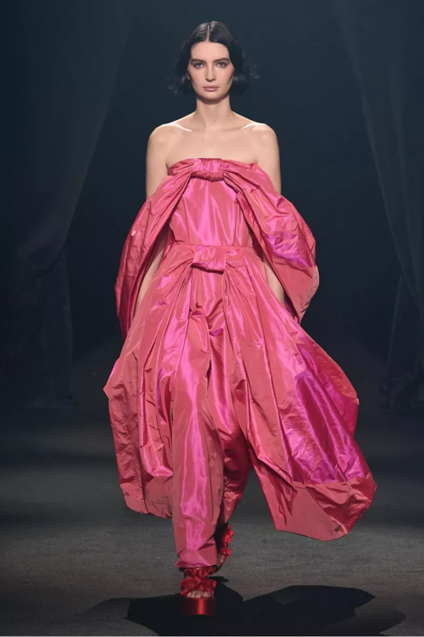 BALENCIAGA背後巨大的蝴蝶結是對Alber的致敬,Alber最喜歡在黑色西服上搭配一隻粉色蝴蝶結領結。
