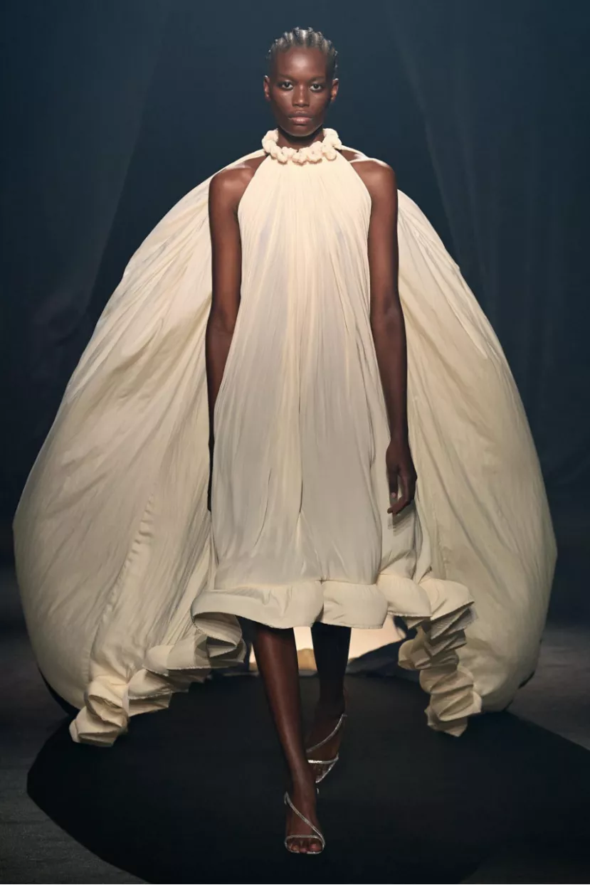 Alber的老東家Lanvin帶來的禮裙讓人聯想到2008年春夏系列中的降落傘連衣裙,真絲的流動感和荷葉邊細節很Alber。