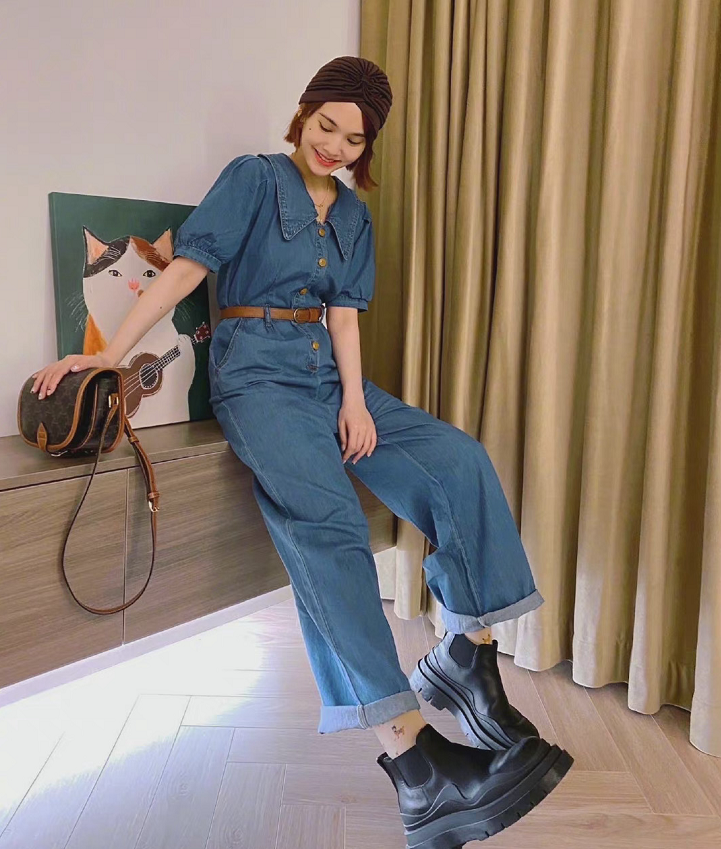 連體褲也是在復古風格裡比較有代表性的穿搭。而且因為是牛仔的元素,即使到今天為止,也是不會過時的。對於大多數的女生來說,也是非常有包容性的。