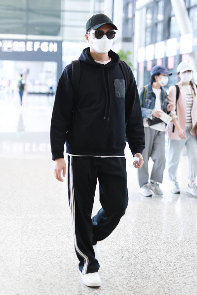 在選擇連帽衛衣時,你可以採用單穿的方式使造型更具整體感,也可以像張智霖一樣在連帽衛衣內疊穿一件簡約白T來凸顯層次。在整體的黑色調下,即便白T僅僅露出了一個衣領與衣邊,也會讓層次感大大增加,同時還構成了黑白配色經典而大氣,時髦度飆升。