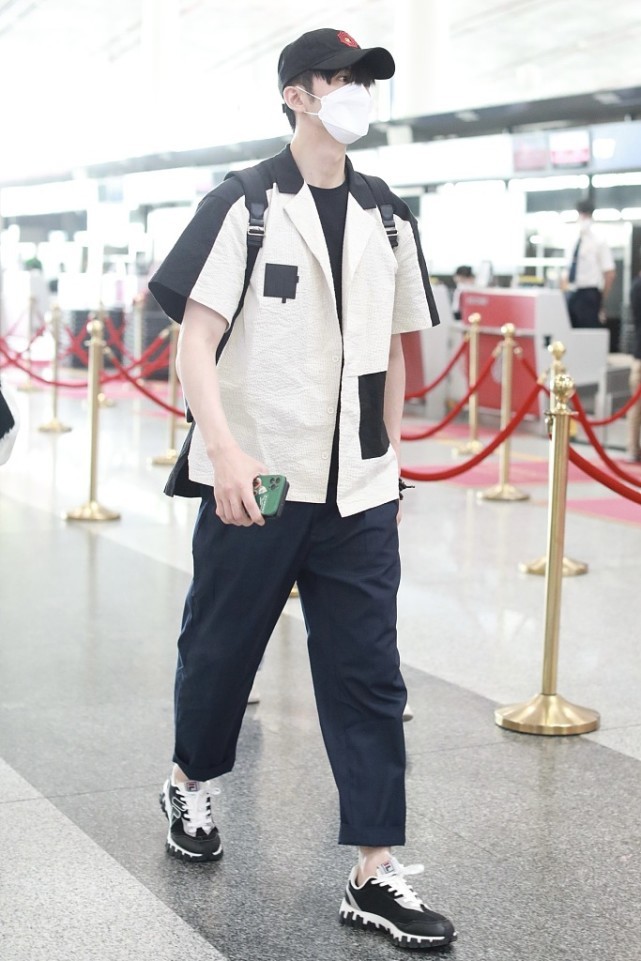 張雲龍就選擇了這樣的搭配,寬鬆感十足的短袖襯衫讓造型看起來尤為清爽。淺色調的開衫作為外套,配合深色內搭能夠在視覺上更顯挺拔高挑,而與褲裝構成相同配色更能夠帶來視覺上的延伸,打造出修長身材。