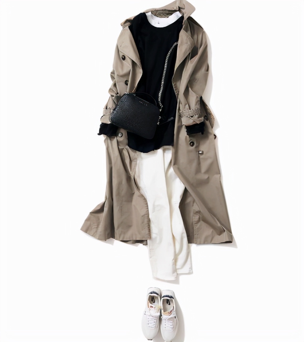 常見的基本款單品,例如精紡針織衫、T恤、褲子等,讓黑色附著,高級效果UP。搭配經典的卡其色風衣和乾淨的白色,利落大氣不失優雅。