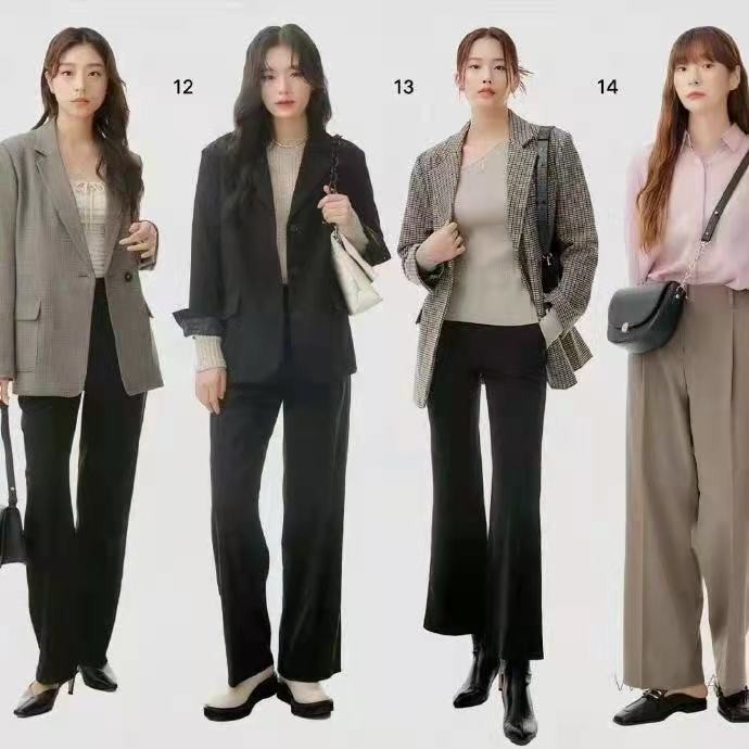 在韓系風格之中,褲裝的搭配當然也少不了,多數以直筒褲為主,對身材有很好的修飾作用,淺色系的西裝褲搭配黑色的夾克,打造中性風格,帥氣又利落。