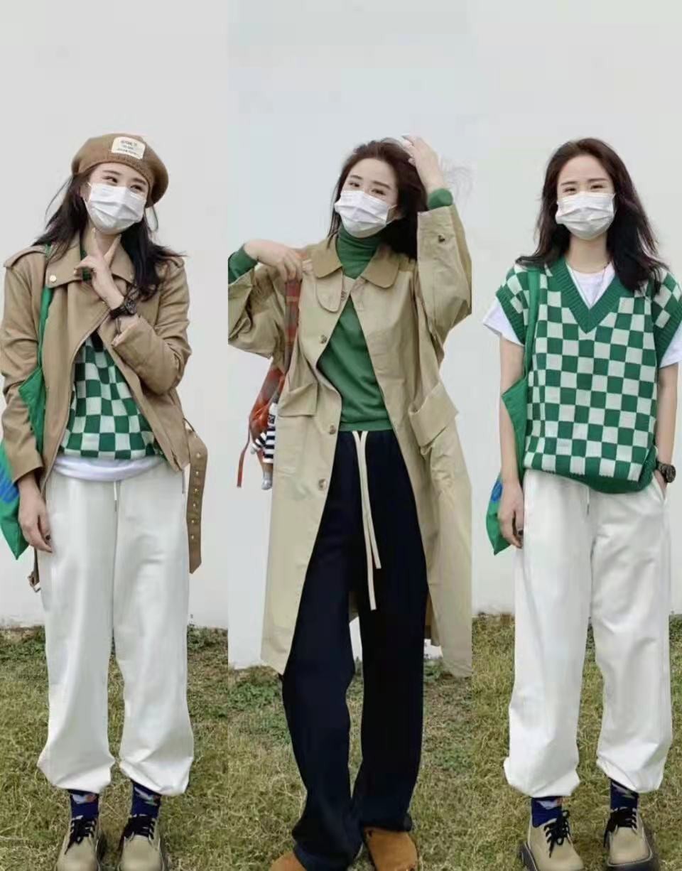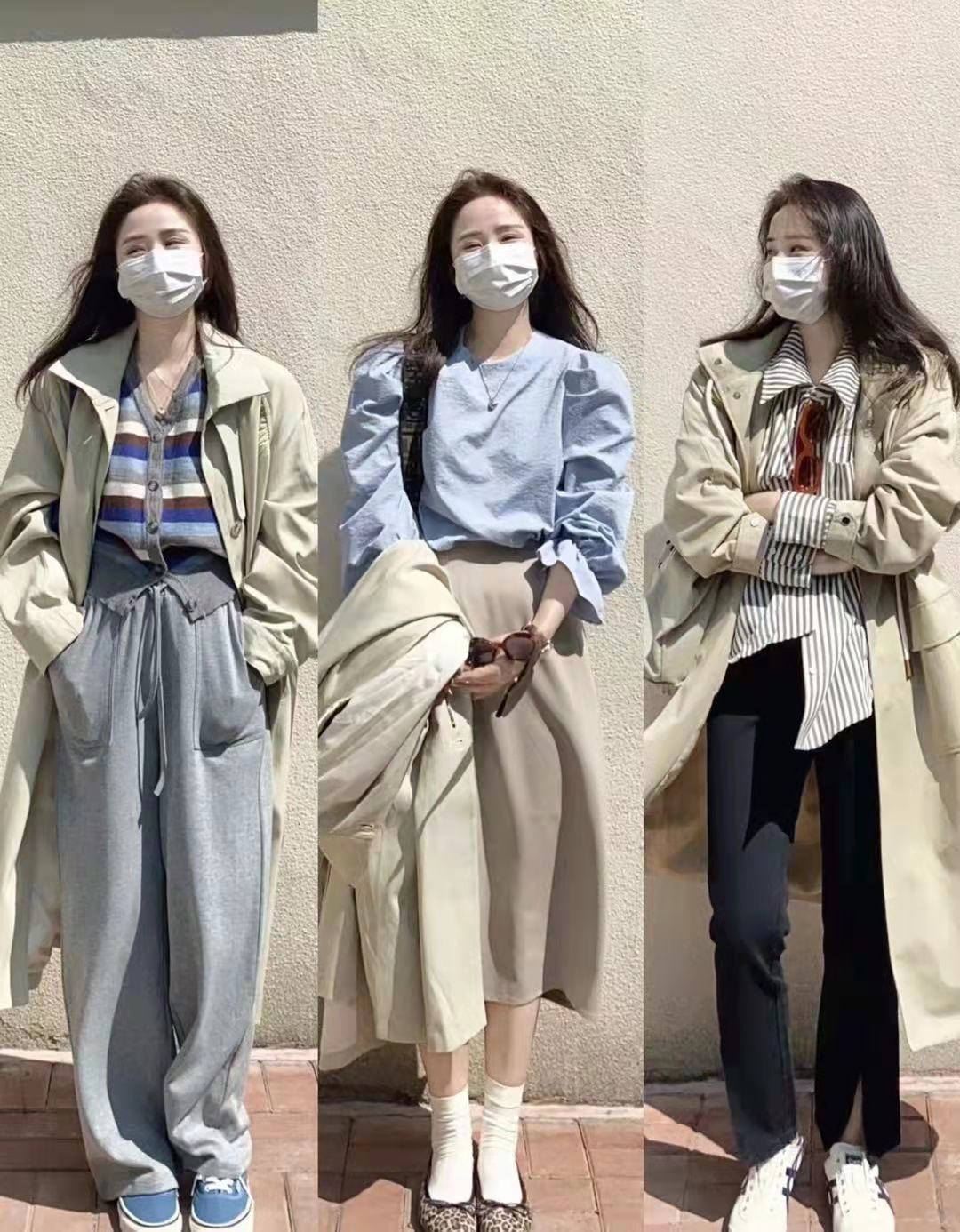 風衣在進行疊穿的時候,內搭可以選擇針織衫,又或者是條紋款式的襯衫,搭配的褲子以灰色運動褲為主,會更加地輕鬆休閒,塑造出韓式風格。