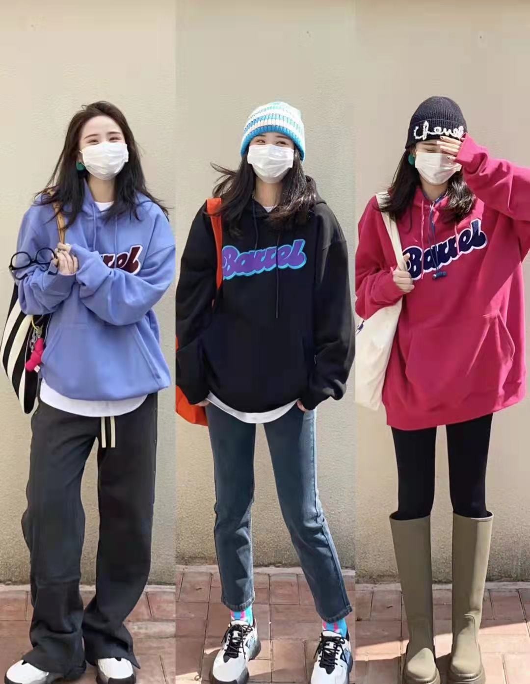 除了簡單款式的衛衣之外,也可以嘗試一下帶有毛茸茸並且有印花的衛衣,打造出時尚街頭感。