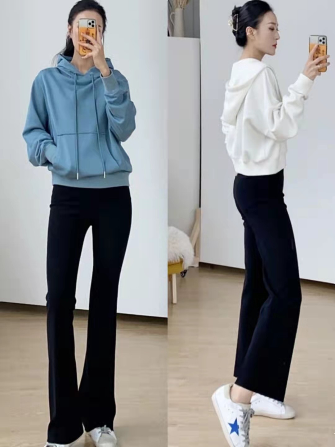 1、衛衣+過踝喇叭褲