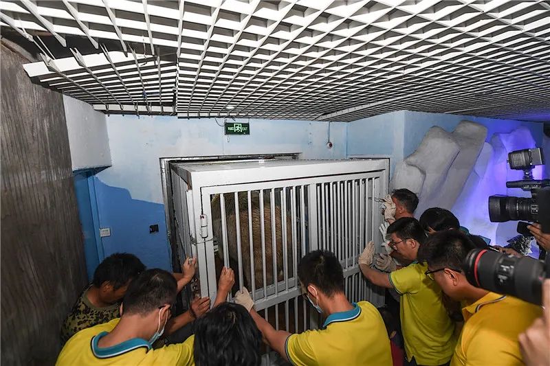 記者注意到,在轉運的過程中,陪伴北極熊「仔仔」近9年的南京海底世界飼養員李陽眼不離「仔仔」,他來的時候「仔仔」才兩歲多,體型差不多是現在的一半。現在「仔仔」大約六七百斤,智力相當於四五歲的孩子。
