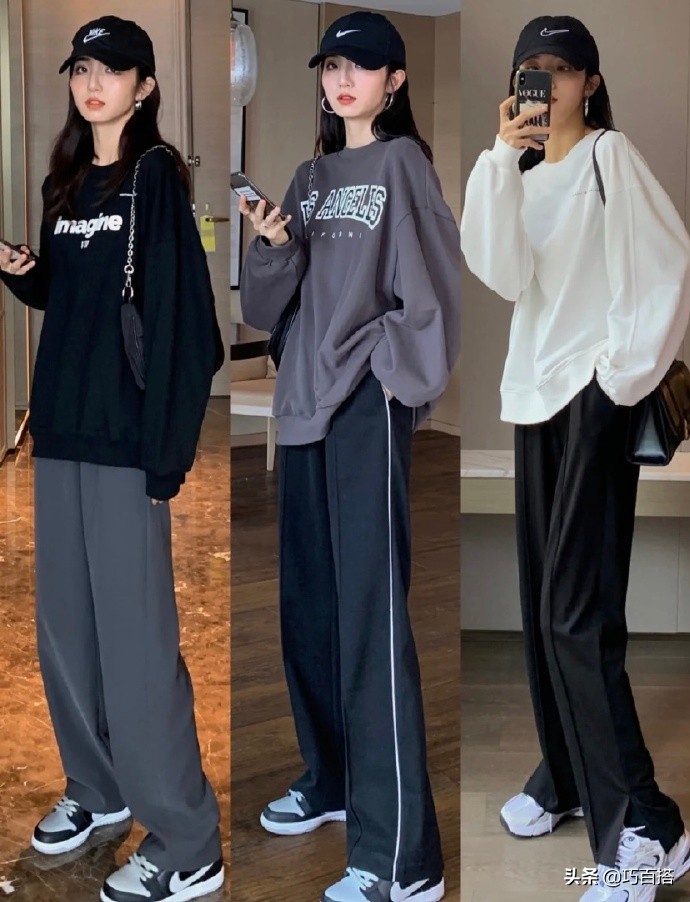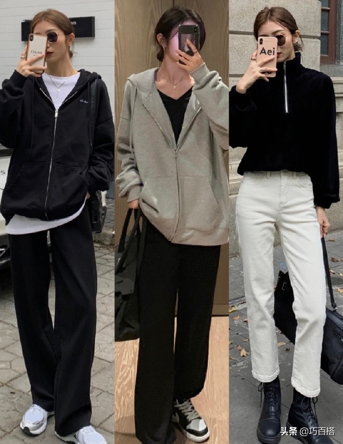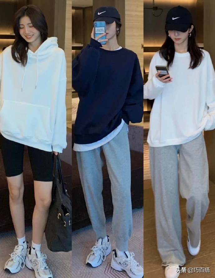 穿它出門,你絕對能是整條街上最亮眼的仔,另外還有一點就是,不管是黑色衛衣還是白色衛衣,與各種各樣的褲子都能搭配,想展示美腿的選擇緊身褲,想營造「紙片人」形象的,就選擇撐不滿的運動褲,在顏色的選擇上,黑白灰任君挑選~