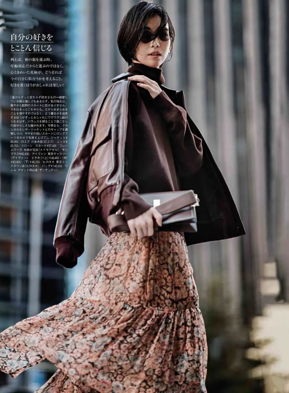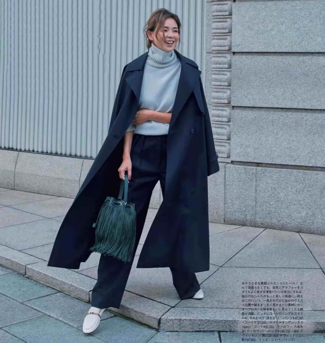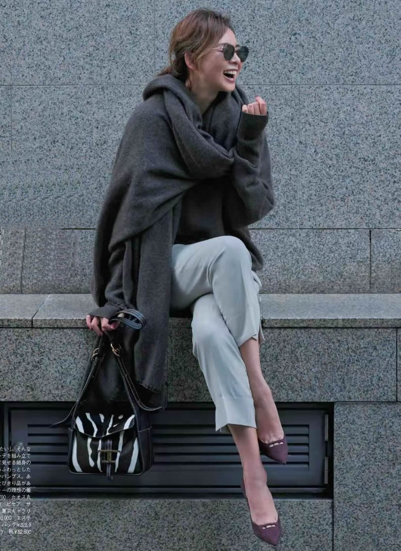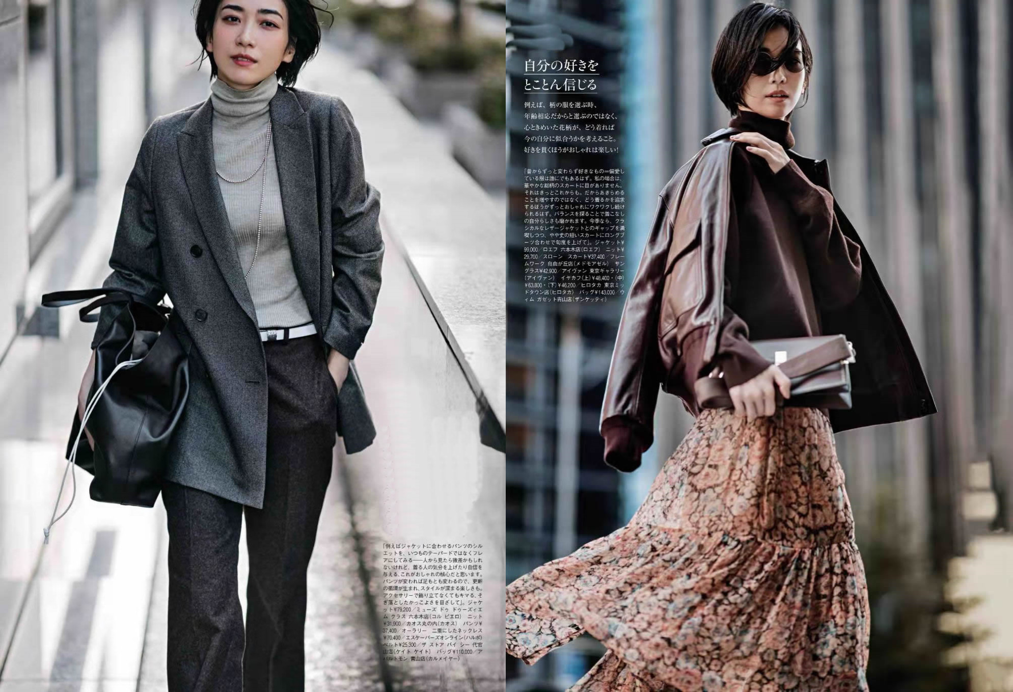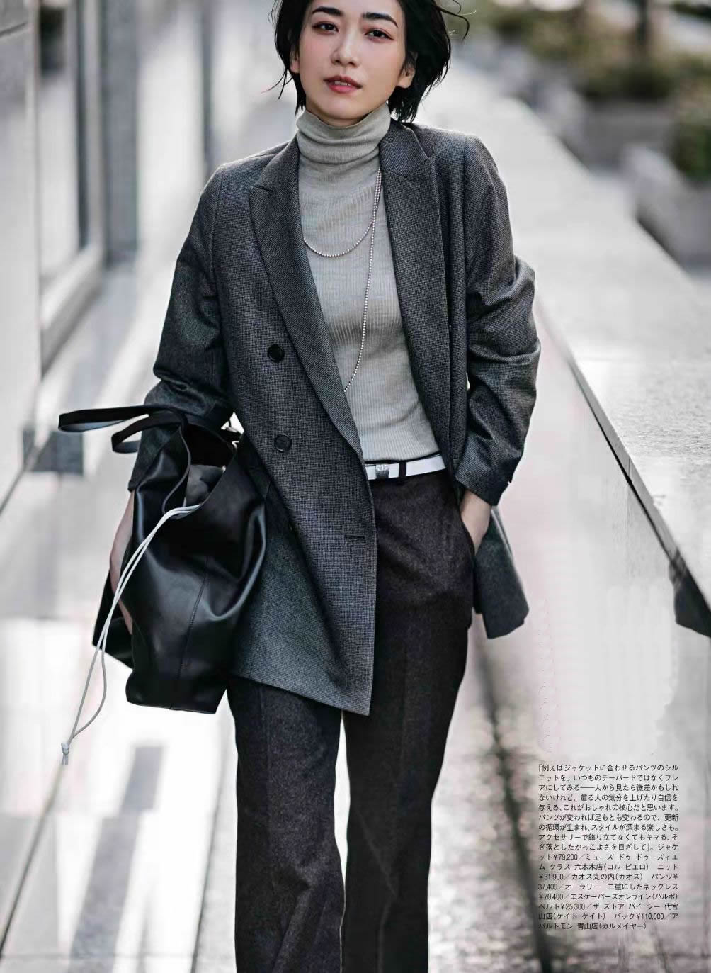好了,回到穿搭。為了呼應微笑與自信,借由日雜,洛薇特意提煉一組高級色的【自信穿搭】,以供賞析。