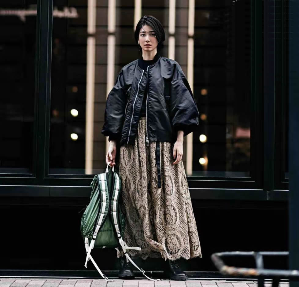 正是千絲萬縷的硬朗關聯,皮衣與裙子才能共同譜寫著兩個字:好看!