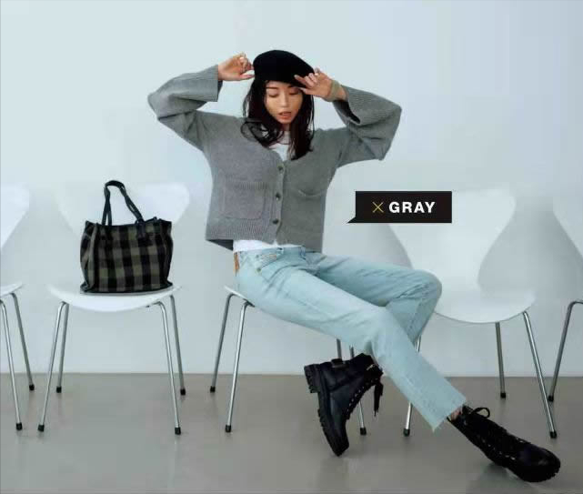 選擇一條淺灰色九分褲與尖頭單鞋,為它制造輕盈與精緻女生味。寬鬆的大版型,也讓深灰色樂在其中。不必一本正經,深灰色,需要更多百變面孔。