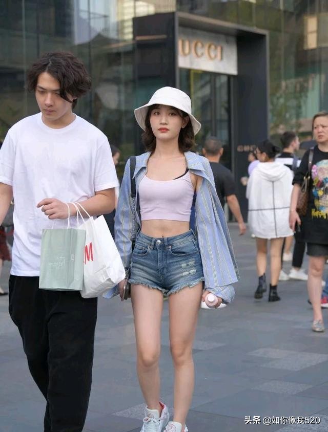 女生下身穿了一件牛仔短褲,款式簡單大氣,上面有做舊的處理,並且是毛邊的褲腿,真的是即時尚又個性,另外,還非常的修身,顯腿長。