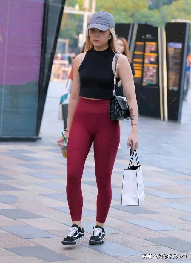 她一身的穿搭可謂非常經典,,紅黑配,大紅色配純黑色,非常的經典,不僅不會俗氣老套,並且還表現出一種簡單大方、清爽舒服的氣質,顯瘦修身,能夠展示好身材,並且適合健身運動,走路逛街,妥妥的休閒風,很漂亮!