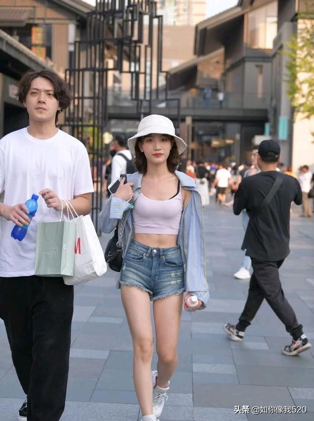 女生她下身穿的是一件白色修身褲,白色象徵著純潔無瑕,高腰修身的裁剪,較好地修飾了美女的身材,展示了她柔軟的小蠻腰。柔軟彈性的面料,使得褲子有著很好的貼合度,輕鬆地展現了美女的雙腿線條,使得她看上去亭亭玉立。