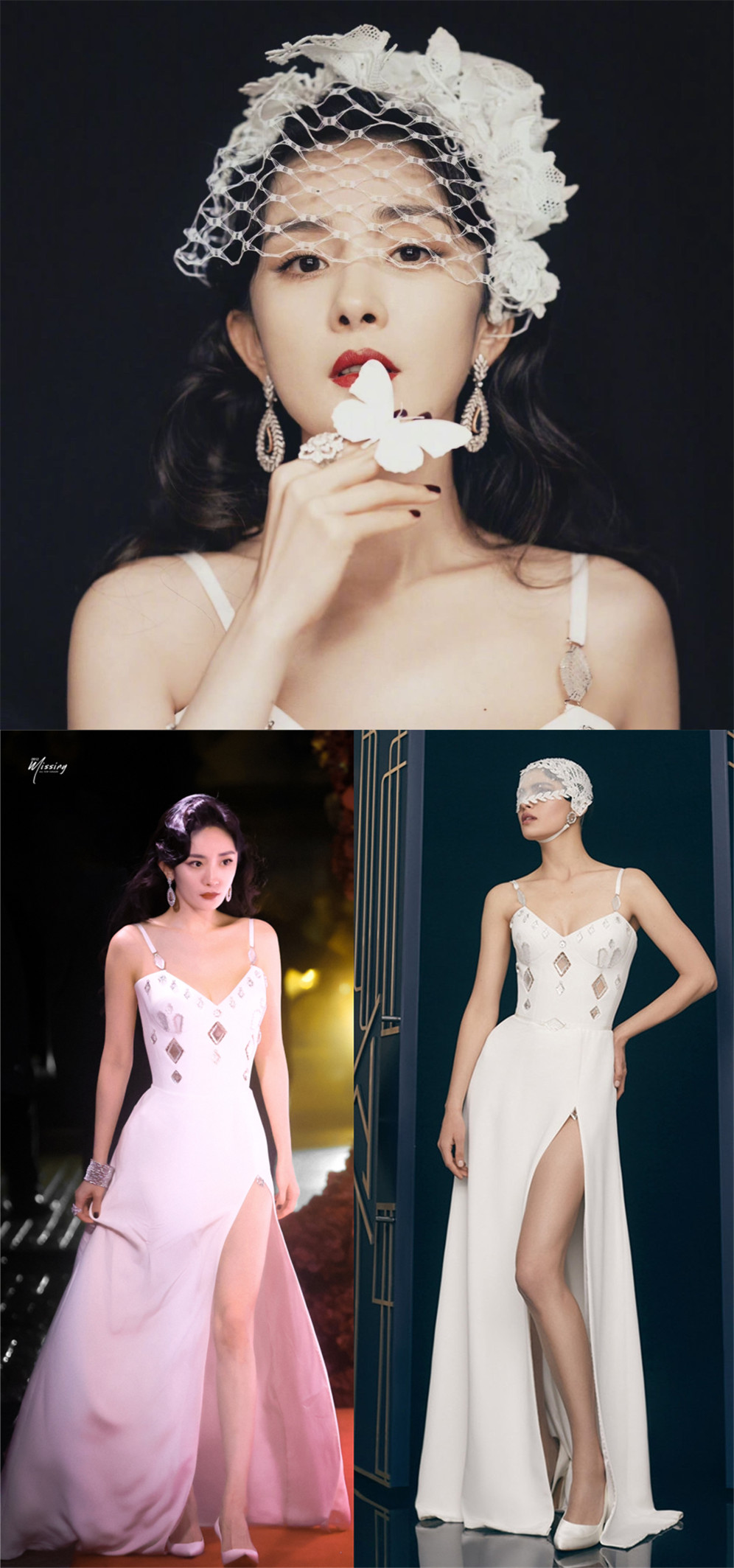 楊冪這次的風格也有些突破,選了一件來自Ulyana Sergeenko Spring 2021 HC的白色吊帶高定禮服,了解這個俄羅斯品牌的寶子都知道,這個品牌的風格就是復古明艷的俄羅斯名媛風格,所以這次楊冪也嘗試了類似的復古明艷風。