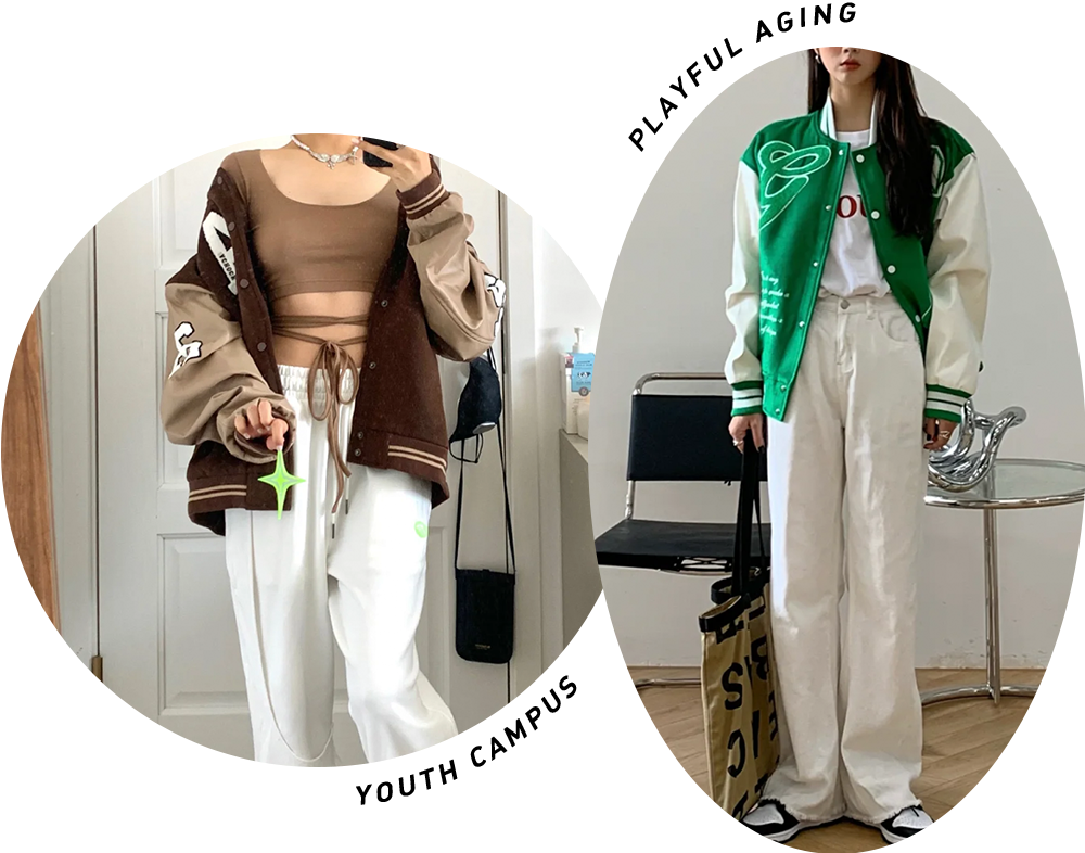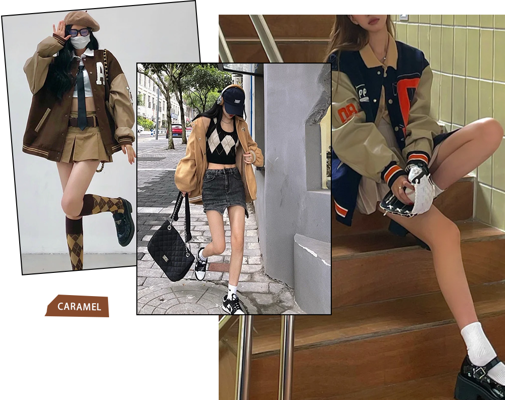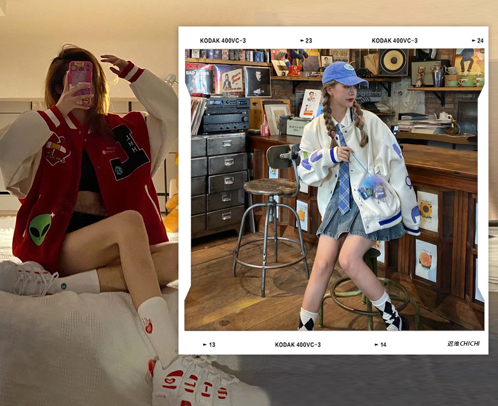 今年美式復古風大火,棒球服外套這個單品還有姐妹沒擁有嗎?搭配短裙和小腿襪就是高校辣妹既視感!