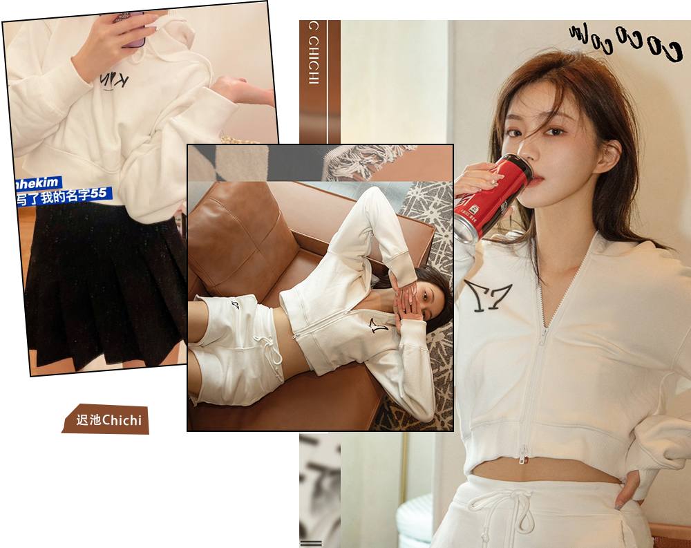 也可以像海貍這樣搭配一套衛衣套裝,氣質與休閒的碰撞,簡單高級又舒適。