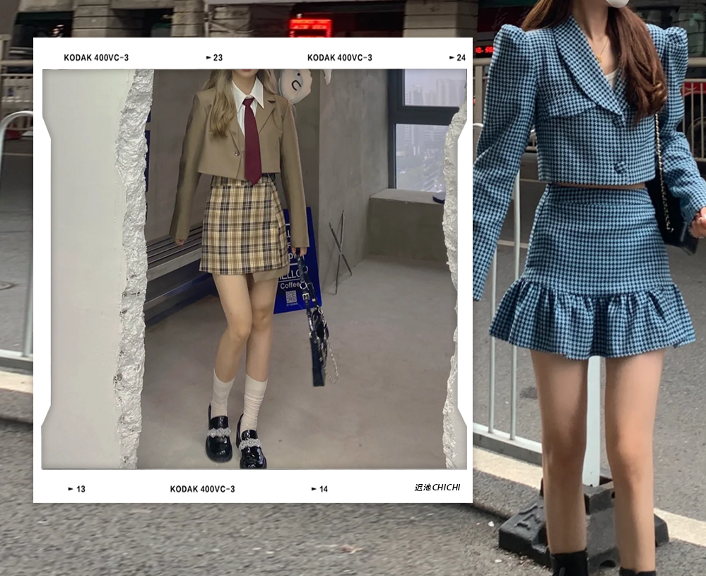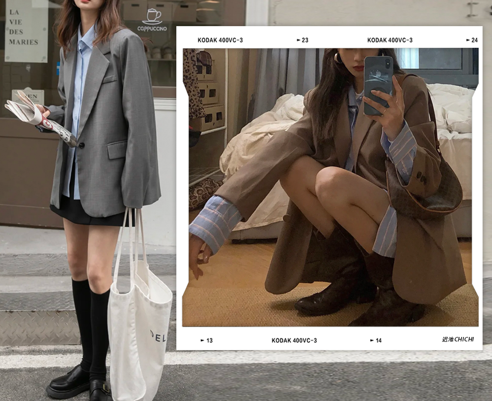 西裝外套也是我安利過一萬遍的單品了,短西裝活潑,適合小個子女生,搭配襯衣和領帶就是韓裡韓氣的學院風。