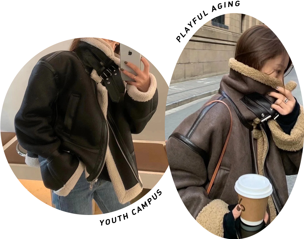 除了大衣,羊羔毛外套也是這個季節必不可少的單品!整件衣服都是毛絨絨軟糯糯的,把自己裹成一隻溫暖的熊!
