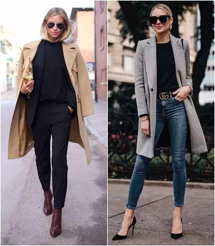 例如說修身高領衫,對於基礎款不要選擇過於厚重的,或是領口過大有堆積感的,盡量選擇修身的細針織,如果脖子短或是不喜歡高領衫的束脖子感,那麼可以考慮半高領。效果差不多,但要友好很多。