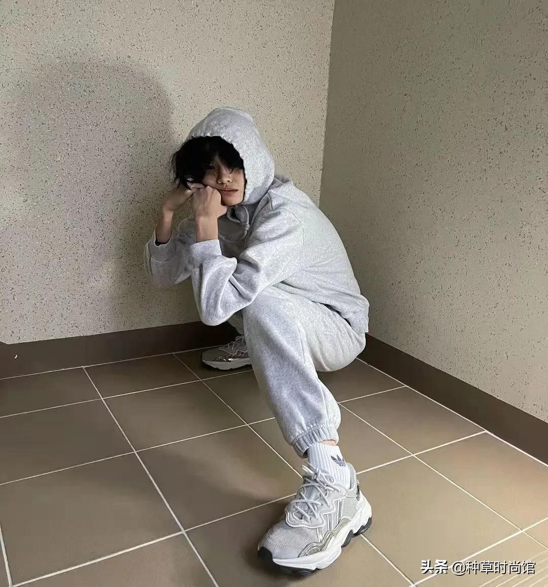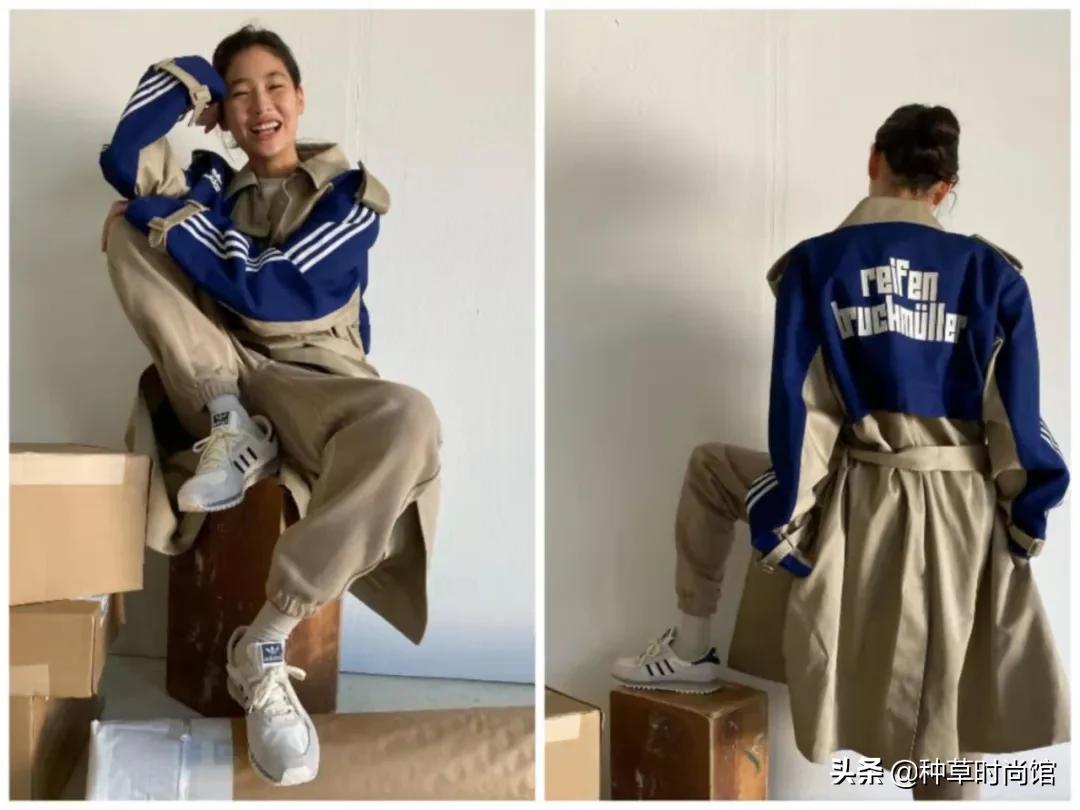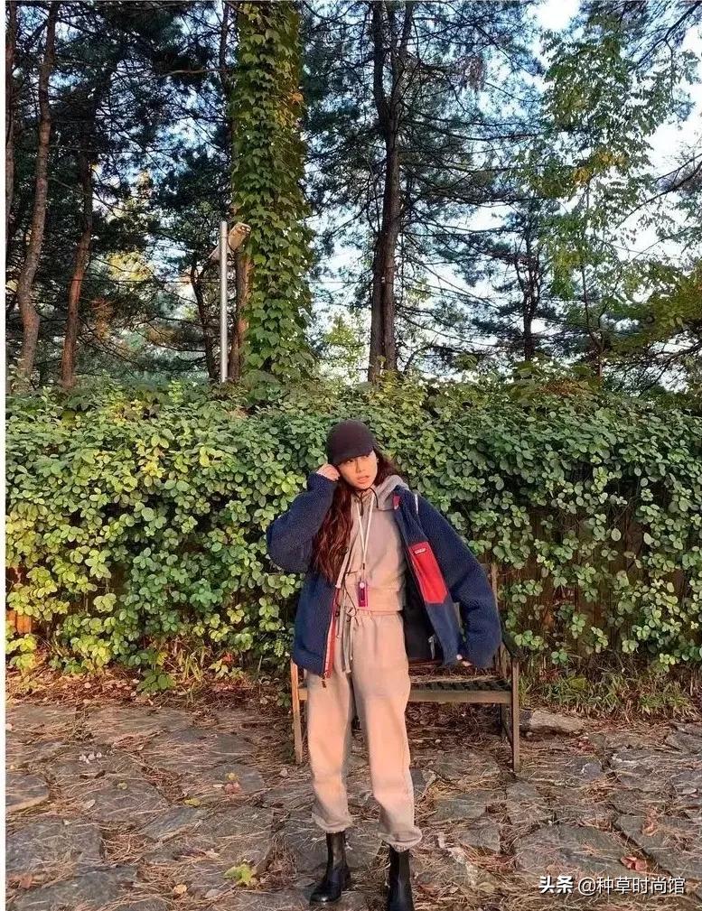你們如果感覺疊穿不太好照搬的話,可以嘗試穿成套的服裝,鄭美女將服裝和鞋子統一色調,這樣看起來很和諧舒服。