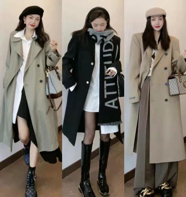 經典的卡其色,帶有墊肩的設計的風衣,搭配裙子露腿的感覺更加的時尚有架式兒。或者是用黑色的中長款式大衣,搭配黑色的騎士靴,變身酷酷女生。西裝款式的大衣,很有韓架式氣質,採用同色系深淺不同的搭配方式,打造上下平衡一致的效果。